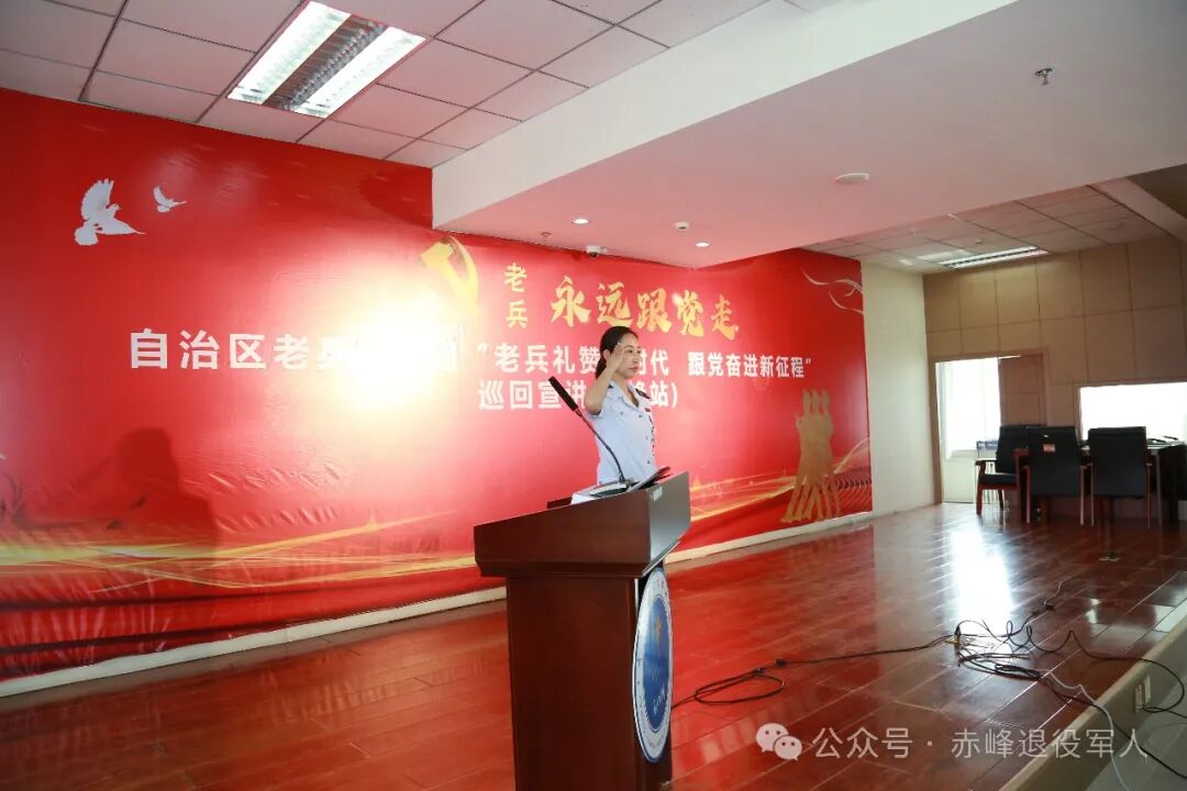 为深入贯彻习近平总书记关于退役军人工作重要论述,进一步加强退役军人思想政治引领,巩固军政军民团结,5月29日,自治区老兵宣讲团巡回宣讲活动在赤峰应用技术职业学院举行。市退役军人事务局党组成员、副局长李宗军为活动致辞,自治区党委退役军人事务工作领导小组办公室秘书处副处长刘富仁、赤峰应用技术职业学院副院长葛学文出席活动,退役军人、退役军人工作者、学院学生代表共计330余人参加活动。