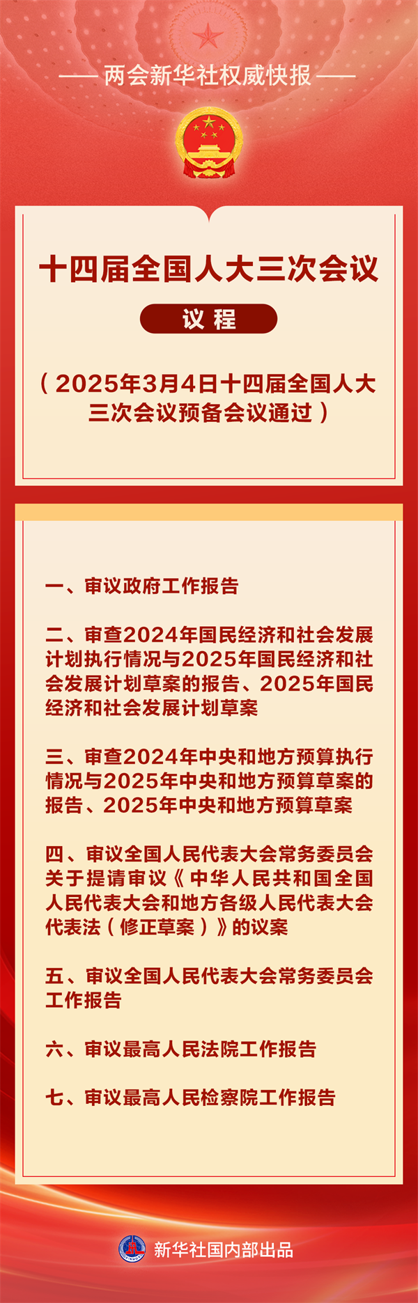 十四届全国人大三次会议4日上午举行预备会议,通过了大会议程。
